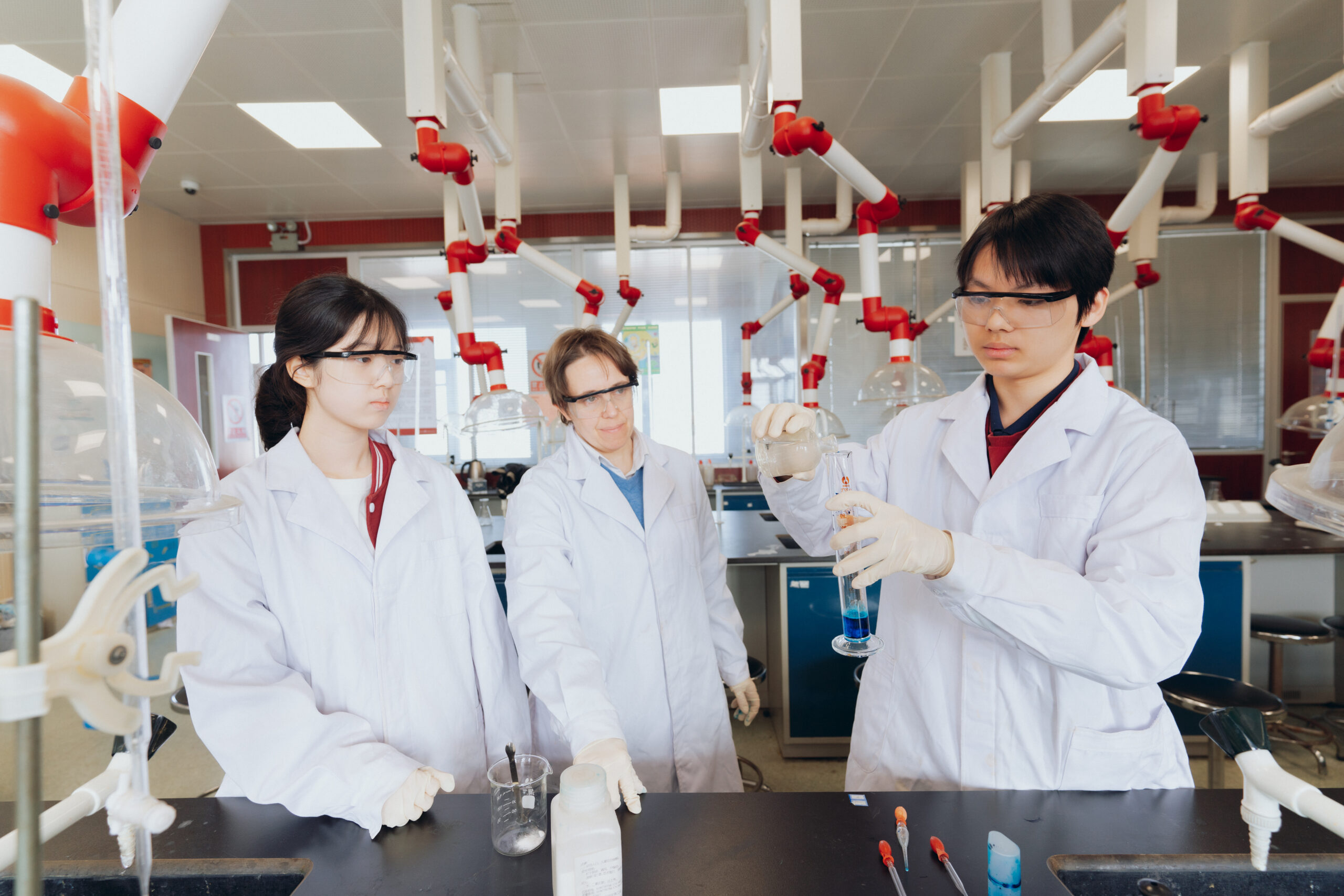 ▲王府师生在英国剑桥A-Level标准的数字化学实验室中