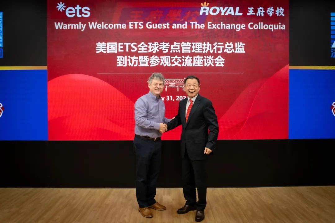 ▲5月末,美国ETS全球考点管理执行总监Dwayne Patterson先生(左)来校交流