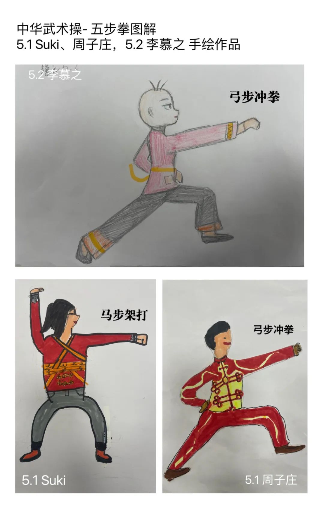 美术课程将义务教育艺术新课标与IB PYP艺术课程标准有机融合,同时吸纳体育课中的中华武术操、舞蹈课程中的羌族舞蹈动作学习,实现了三门学科知识的整合与贯通。