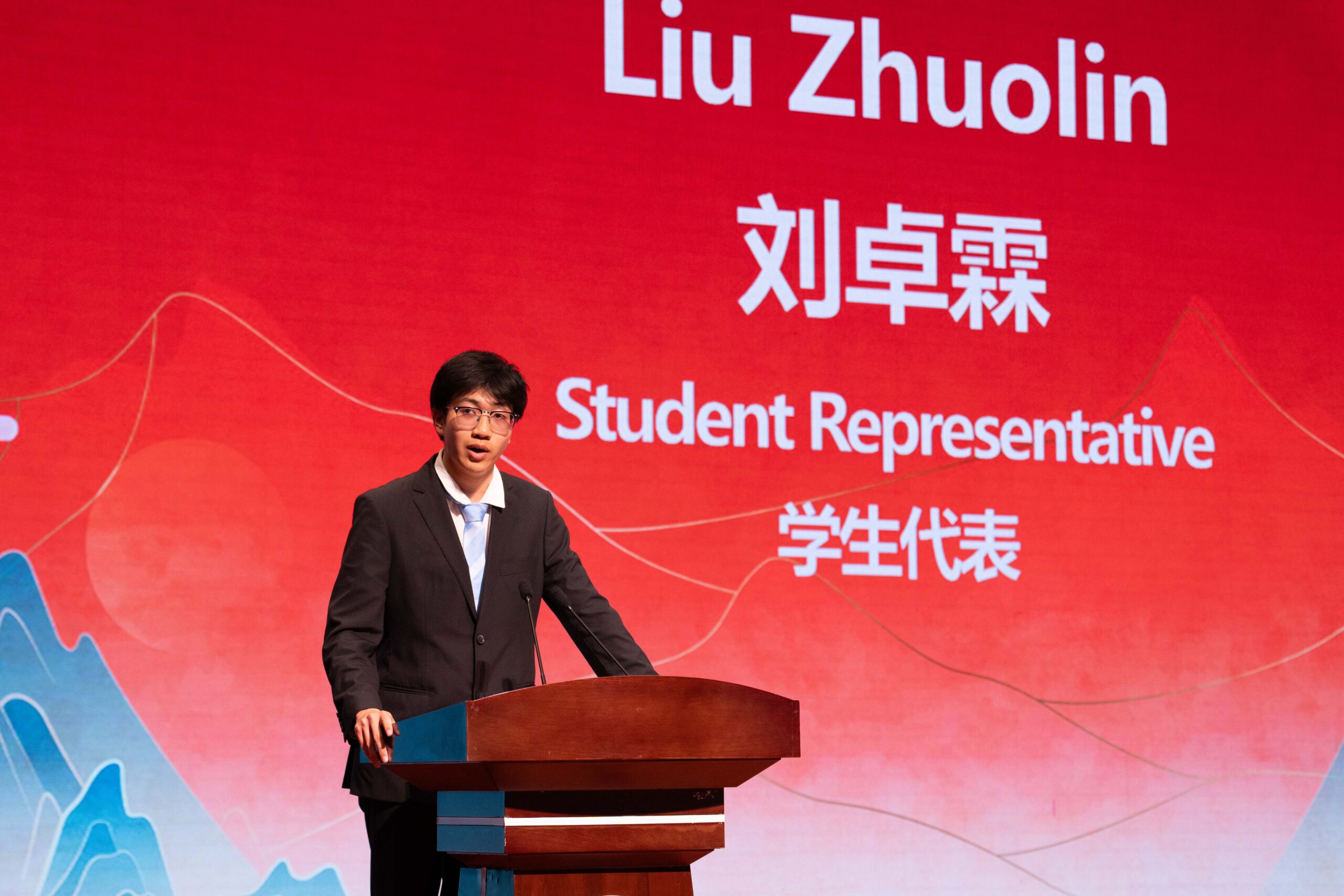 当今世界,国际风云激荡,科技革命浪潮奔涌,教育范式、人才标准与产业需求正经历着前所未有的变革。今天的成人礼正是你们走向辉煌时代的开始,愿同学们以“风物长宜放眼量”的胸襟和“知难而进、不畏险阻”的勇毅托起家国的期许,新时代的辉煌,正等待你们以成人之姿去书写、去开创!