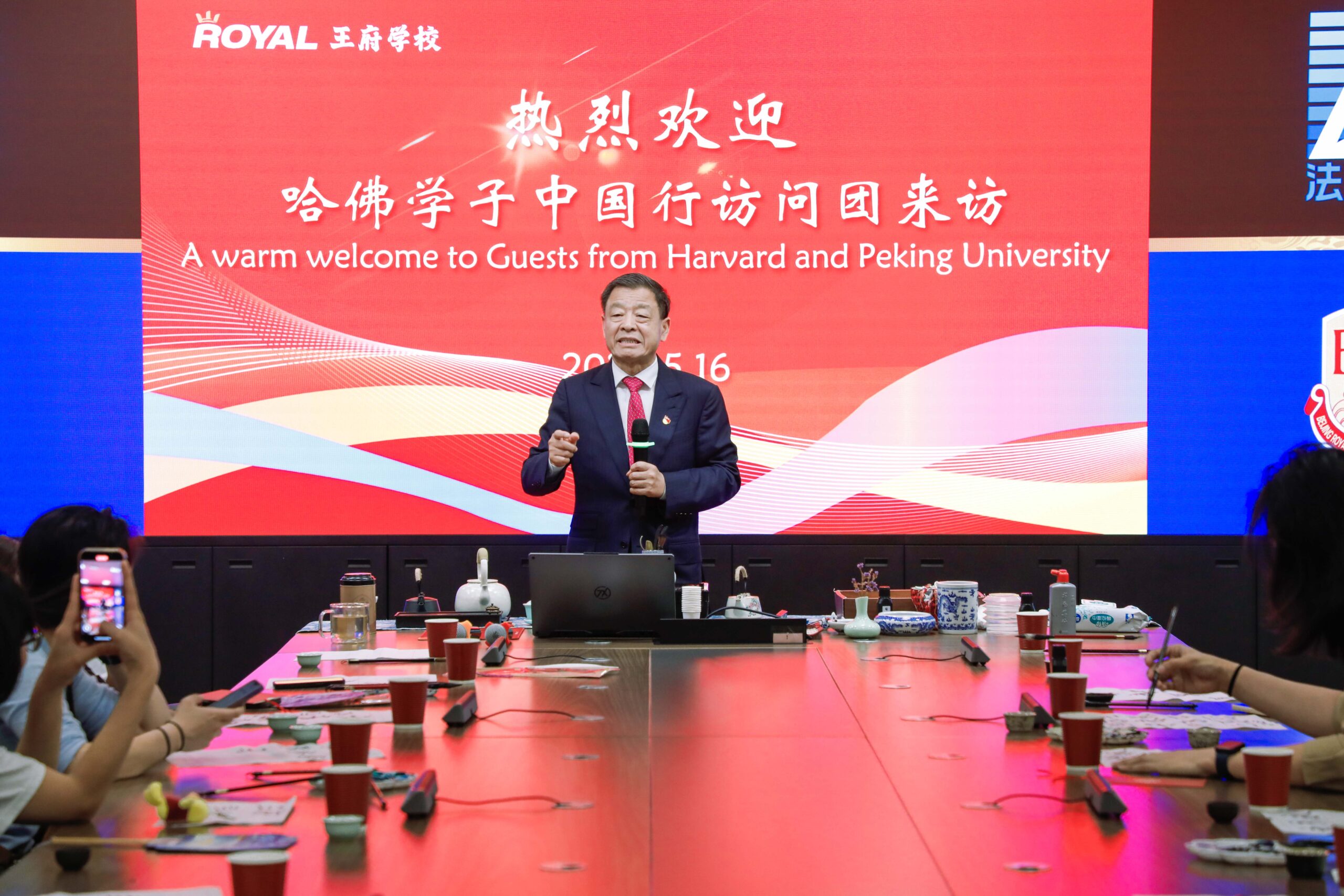 王广发总校长在百忙之中也参与了此次对话,他首先对代表团的到来表示热烈的欢迎,并回顾了过往与哈佛大学的亲密联结,总校长表示,自2009年哈佛教育学院院长首次访校以来,历任院长持续关注王府学校的教育改革与实践,这份跨越太平洋的信任,正是我们深耕国际理解教育的最佳注脚。而王府之美,不仅在于亭台楼阁的东方雅韵,更在于其承载的教育理想。我们愿意依托丰富的国内外教育资源,串联国际学术资源网络,搭建基础教育与高等教育的桥梁,让“教育无国界”的愿景真正照进现实。