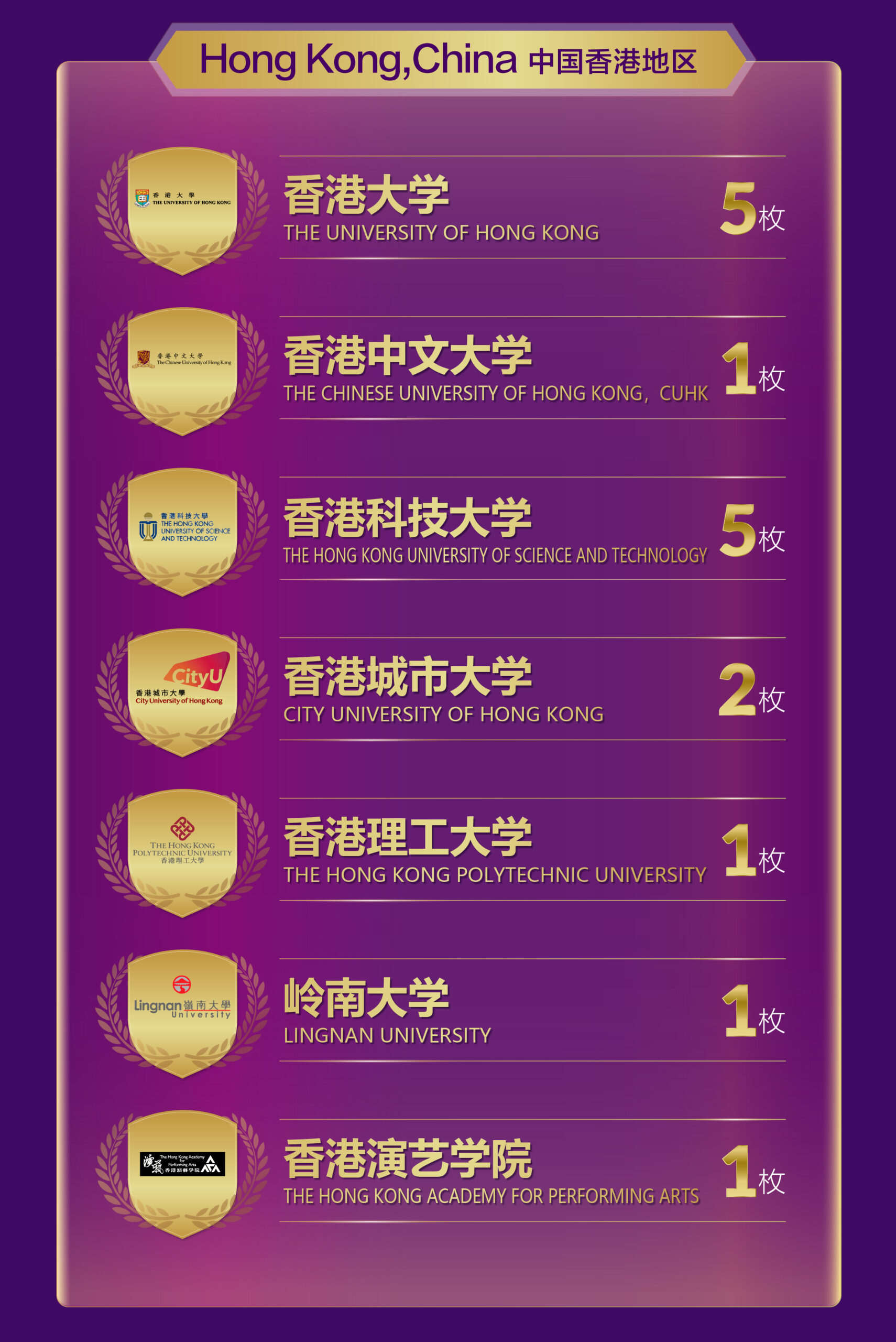 QS世界Top 100收获790枚