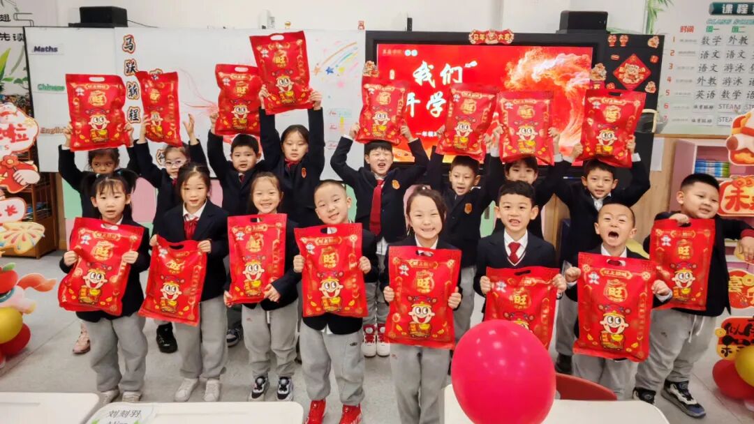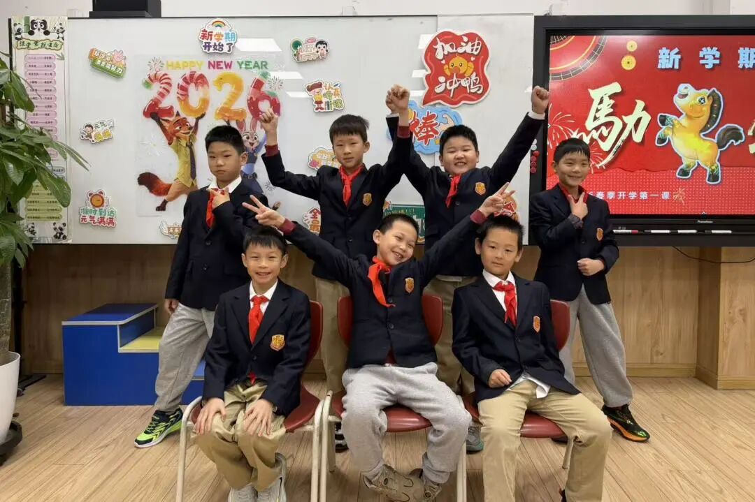 小学部的欢喜,是用心与期待的相遇。教室里,老师们早已精心布置,红彤彤的装饰、可爱的摆件,把课堂装点得暖意融融、喜气洋洋。孩子们对着镜头比耶、微笑,一幕幕画面藏着灿烂的童年模样,也藏着对新学期的小小憧憬。