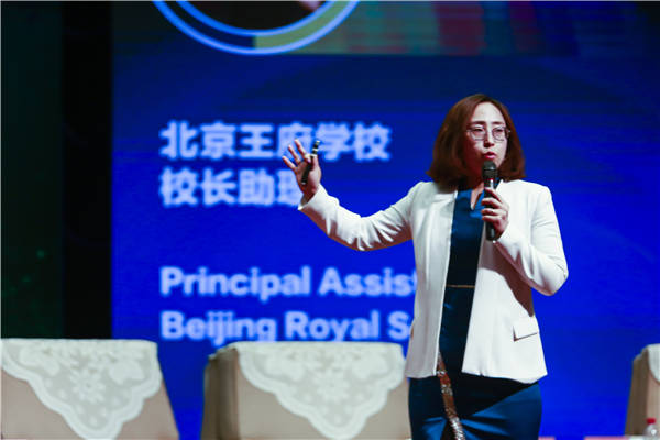 ▲北京王府学校校长助理余瑶做 UNESCO “最优移动学习实践”的演讲。