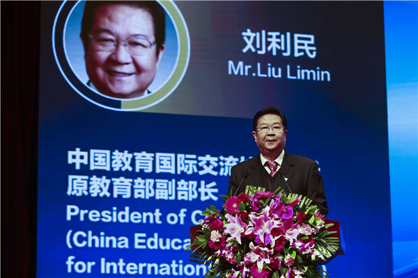 ▲中国教育国际交流协会会长、原教育部副部长刘利民致辞。