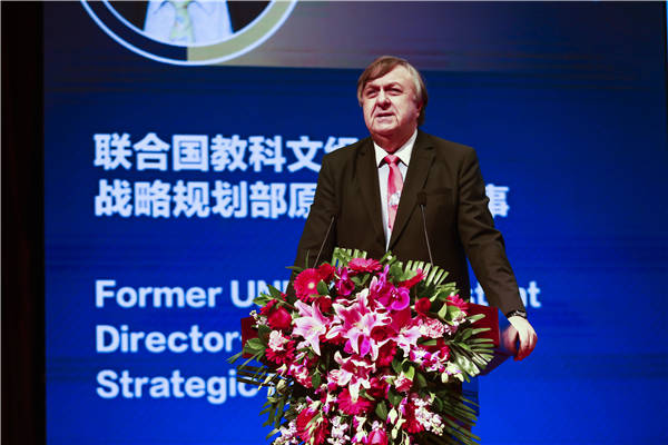 ▲联合国教科文组织战略规划部原助理总干事Hans d’Orville致辞。