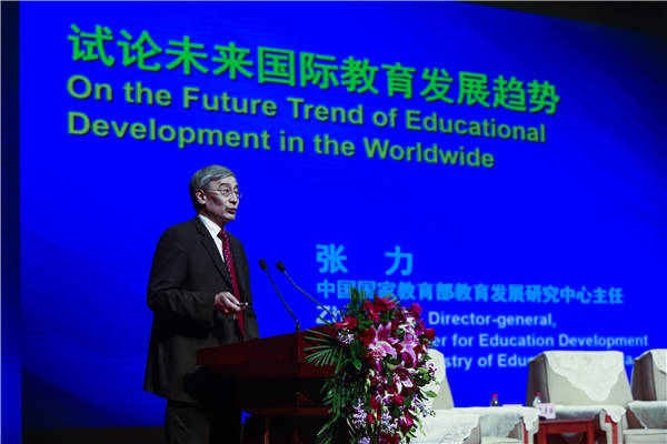 ▲教育部教育发展研究中心主任张力试论未来国际教育发展趋势。