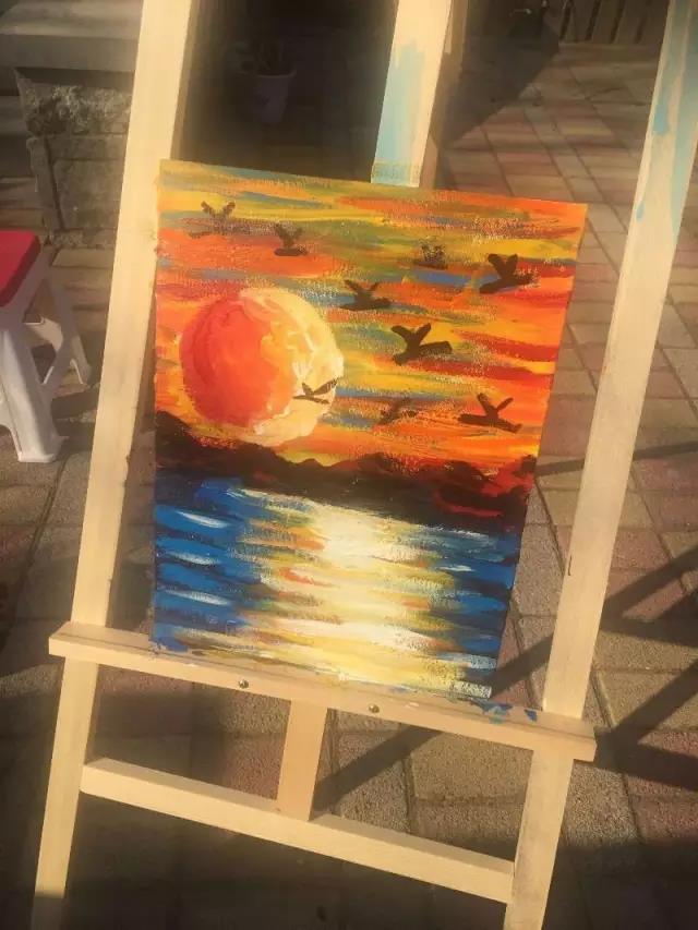 清晨醒来,抬眼望向窗外,今天的朝霞格外美丽,我想起刘禹锡那句“金霞昕昕渐东上”,忙唤孩子起来看,大自然诗情画意的景致是最不应错过的。睡眼惺忪的她,兴致倒也极好,边看边说:“和我的画儿很像。”是的,她喜欢跟着王府外国语小学的美术老师学习画画。