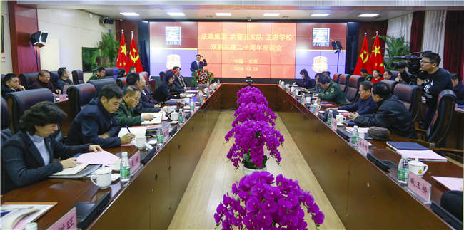 ▲“法政集团、武警五支队、王府学校双拥共建二十周年”座谈会现场