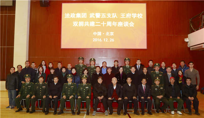 2016年12月26日,“法政集团、武警五支队、王府学校双拥共建二十周年座谈会”在北京王府学校举行。