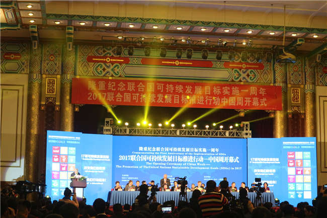 2017年1月9日,联合国可持续发展目标推进行动中国周开幕式在北京饭店金色大厅召开,隆重纪念联合国可持续发展目标实施一周年。多位国家领导人以及来自NGO组织、科研机构、学校、媒体、民间社会和艺术届的代表汇聚一堂,以17项可持续发展目标内容为核心,以主题日方式,开展主题性公益活动,凝聚中国社会力量,积极参与推动可持续发展目标实现。