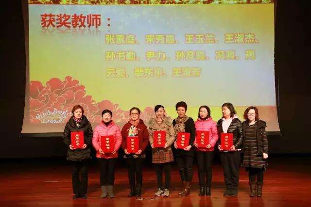 大会第二项,就是大家最期待的颁奖环节,任文茹校长、孙健主任、工会主席么荣萍老师、教务处代静主任和素质部唐绍菊老师,为全勤奖、优秀班主任、爱心妈妈、优秀年级组、优秀课程组、素质闪亮之星、先进工作者等23个奖项、几十名教师颁发了奖状和证书。