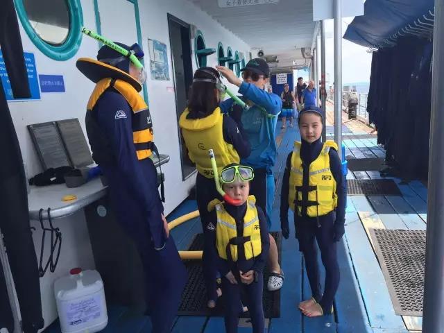大堡礁海天一色的美景使我们仿佛置身梦境,嘟嘟换好泳衣、戴上面罩迫不及待地投入大海的怀抱。色彩斑斓的珊瑚尽收眼底,几十种鱼儿穿梭在身边,用手去捉,它们灵活地逃跑了,它们简直是太美了,嘟嘟迷上了这个五光十色、无奇不有的“海底世界”!