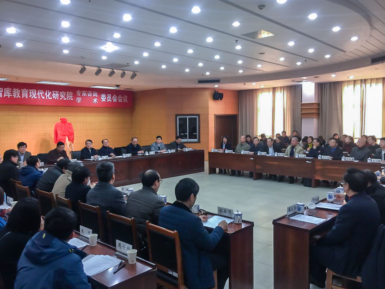 在随后举行的专家咨询委员会和学术委员会分组研讨会上,专家和学者们对“教育现代化进程中应当关注和研究的问题”进行了研讨,并为该研究院的发展建言献策。我校校长王广发在专家咨询委员会讨论现场做了主题发言,阐述智库建设和教育现代化的关系。