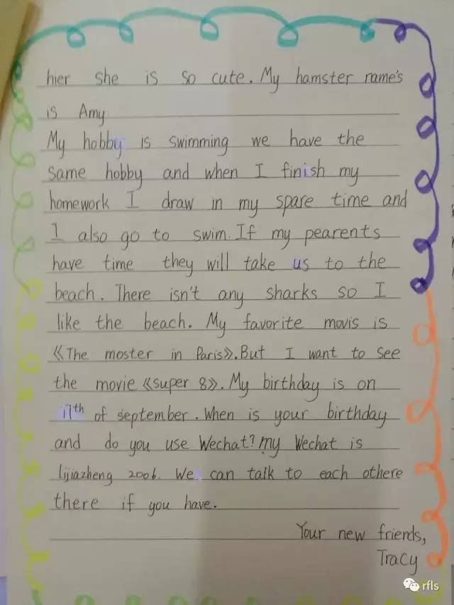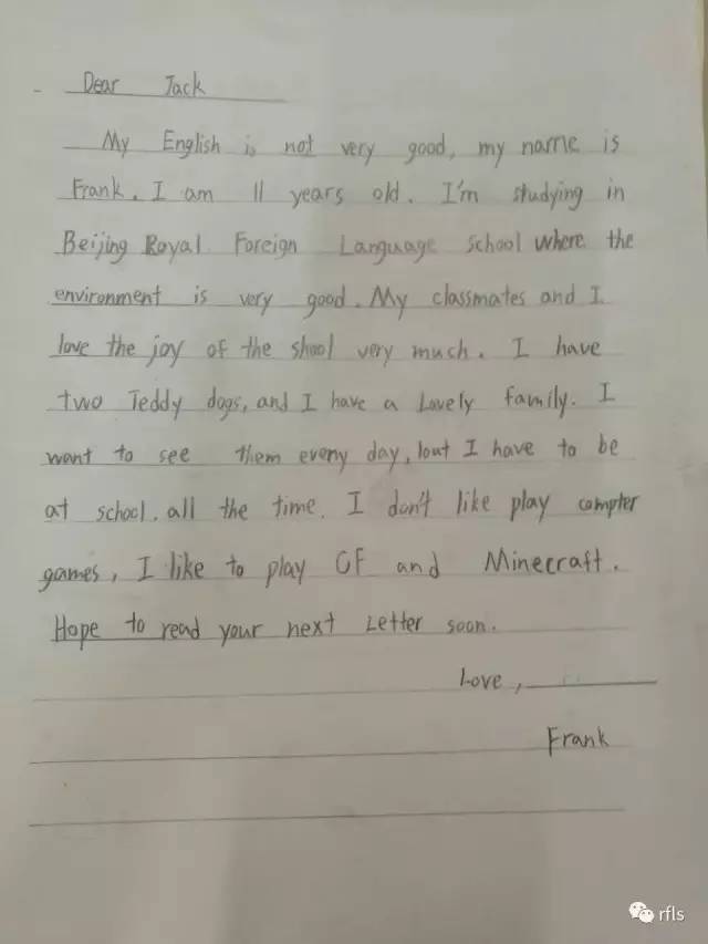 信件往来中,王府娃既锻炼了英文书写,又将平日里的英语学习真正的运用到实际生活当中,更加激发了同学们的学习兴趣。
