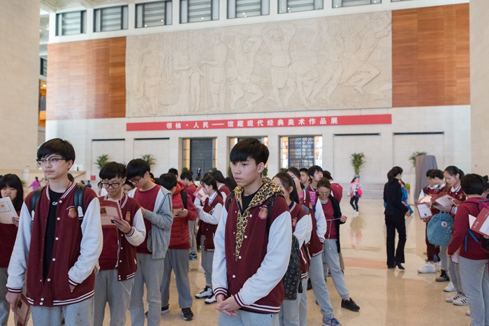 到达国家博物馆后,同学们按预先分配好的队伍井然有序的进入馆内。国博的工作人员为学生准备了任务单。