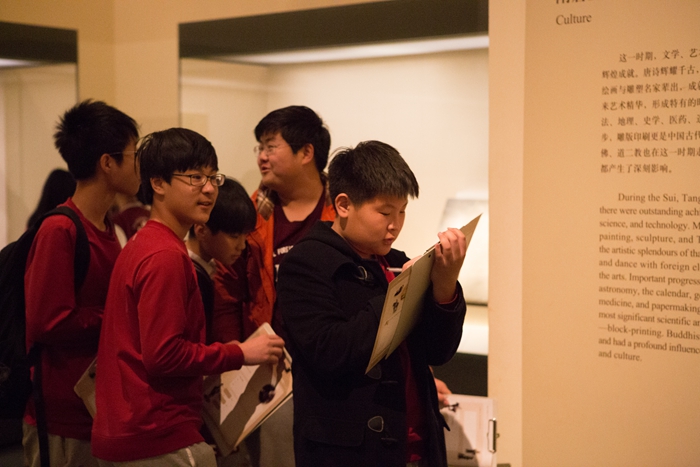 随后同学们又在国家博物馆讲解员的带领下,分成4组进行不同主题的参观学习,在这里有的同学了解了中国古代农业畜牧业发展的历史,有的同学追溯了中国陶瓷艺术的渊源,还有的同学明白了中国青铜器发展的历程等等,不同的主题让同学们领略到人类文明发展的不同方面。