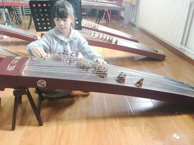 因为我自己在学习古筝,所以女儿对古筝也非常感兴趣,经常戴上我练琴的假指甲,然后在古筝上叮叮咚咚地弹起来。转入王府之后,学校有专业的古筝教师和古筝社团,她和我商量要改学古筝,我报着试试看的想法,给她报了灵子古筝乐团。