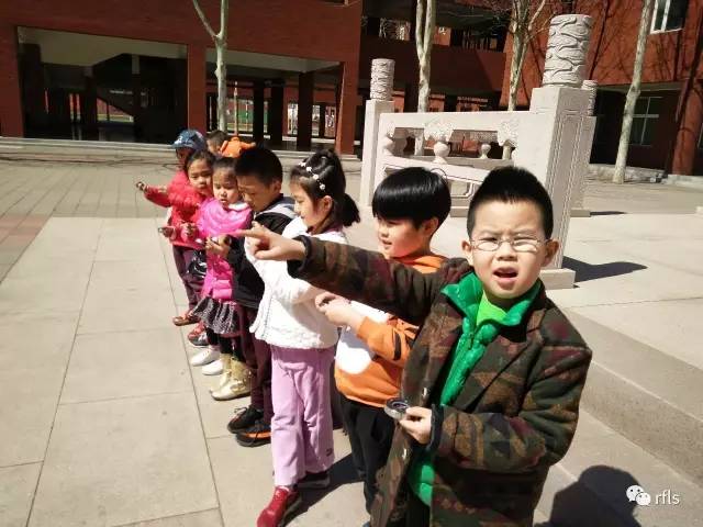 在小朋友们看来,指南针是陌生且神奇的。第一节课,张老师先在教室里,给孩子们普及方位的知识以及指南针的使用方法,课上,孩子们就已经熟练地掌握东、南、西、北四个方位和指南针的使用方法,为第二节课的外出实践奠定了很好的基础。