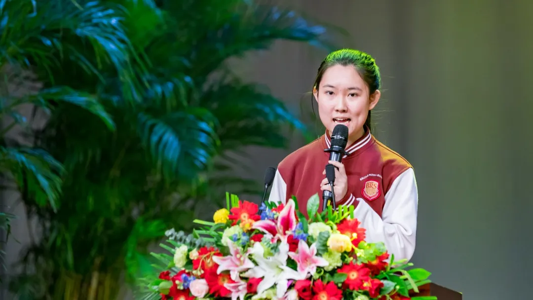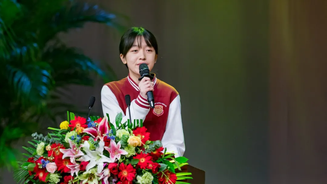 时任高一年级学生会主席、高一2班班长的高俪宁同学在本学期荣获了优秀学生干部称号。刚刚步入高中阶段的她在发言中回顾了在王府学校六年的感悟。她表示虽然作为一个“老王府人”在升学前做足了准备,但是高中生活还是感到了前所未有的陌生,因为全新的走班上课形式以及电子产品的使用,更加要求学生的自觉性和自我管理能力,但繁忙的学习和全新的阶段也让她倍感充实,她更是运用自己出色的个人能力在高一阶段刷新着个人履历,组织完成了一项又一项学生活动。