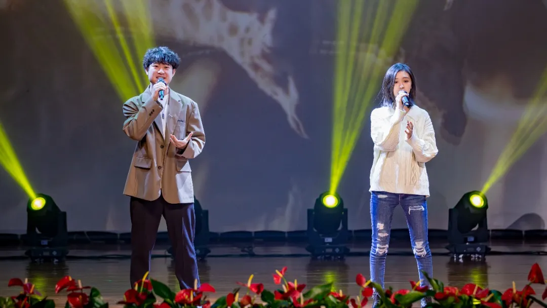 ▲李嘉慧雯、杨荐宇同学带来歌曲《Can You Feel the Love Tonight》