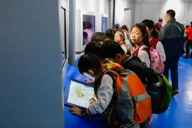 在一楼大厅,围绕着宇宙起源、已知的星系和探秘太阳系等航天知识的介绍,用视频模拟技术,让孩子们对航天知识有了浅显的了解。