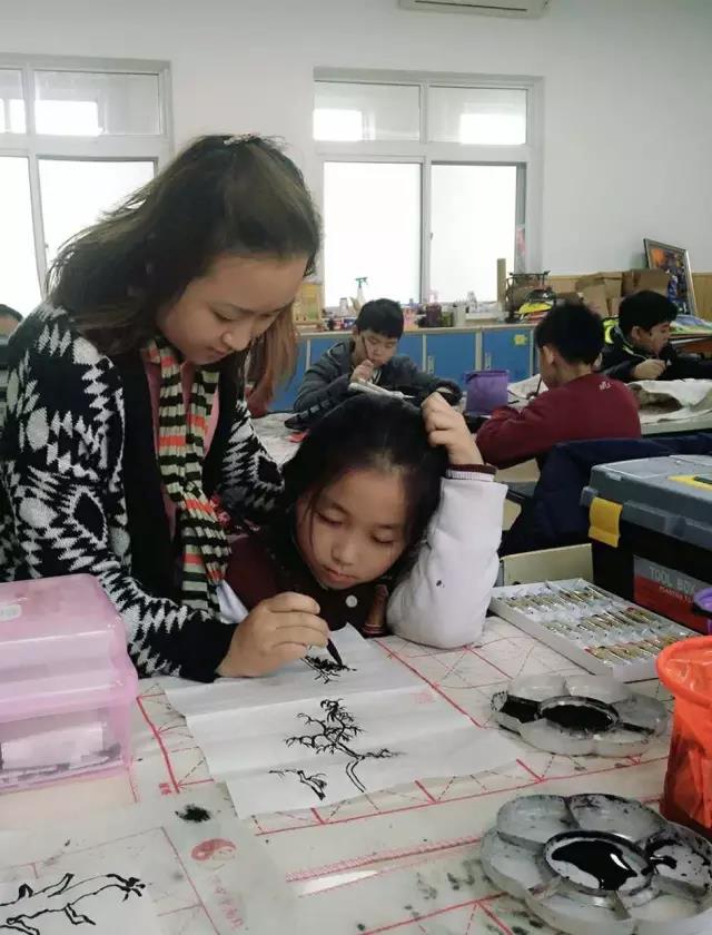 李老师通过对齐白石、吴冠中、潘天寿等艺术大师作品的讲解、临摹与再创作,让孩子们了解国粹的魅力,对传统精神进行有效地把握和继承,从而提高孩子们的欣赏能力,使其在自我实践中体会到中国画的韵味,受到传统文化的熏陶,培养学习兴趣,提高动手能力,全面促进学生综合素质的发展,培养有个性、有涵养、有特长、有思想、有创造力的小学生。