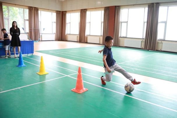 第二个关卡要求孩子们掌握足球运球技能。孩子要运球通过障碍后方可选题答题,答对之后才算成功。加油!孩子们!