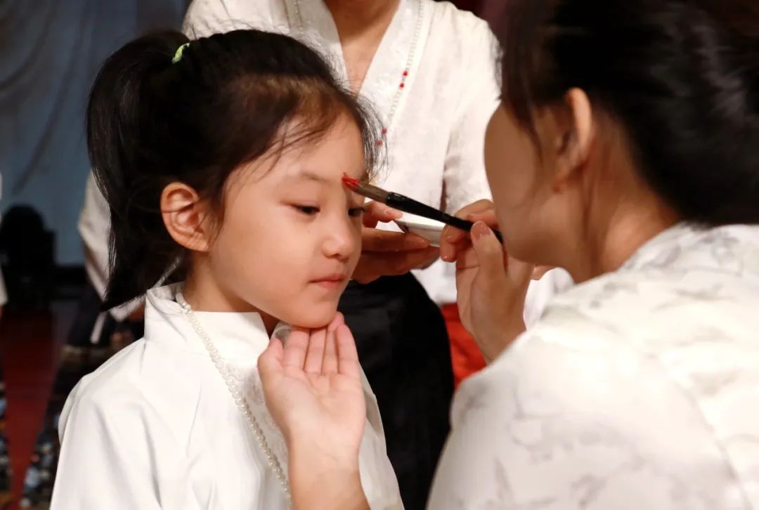 一笔朱砂,轻点眉心,寓意开启智慧,从此眼明心亮,勤奋读书。