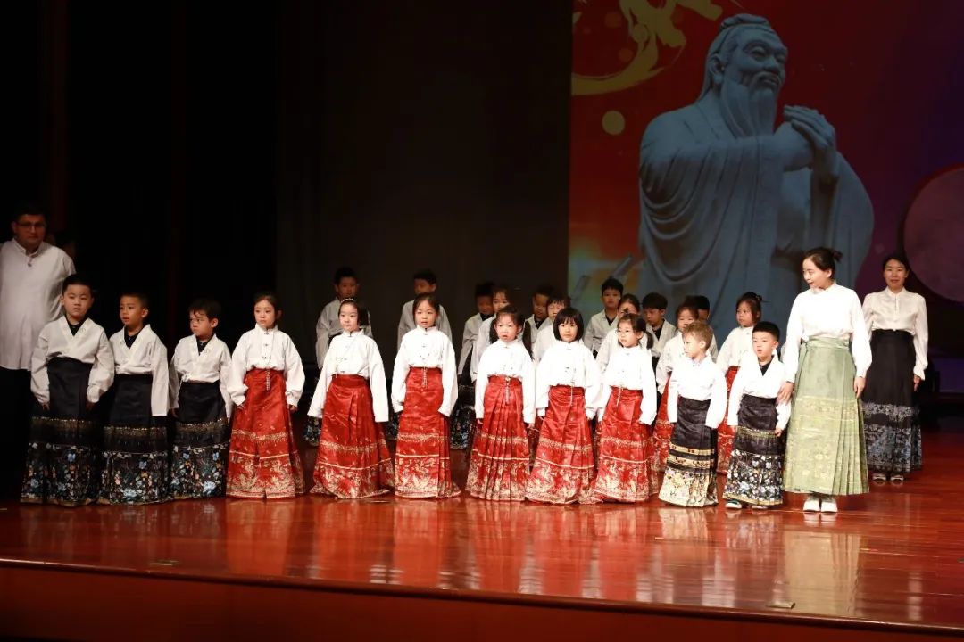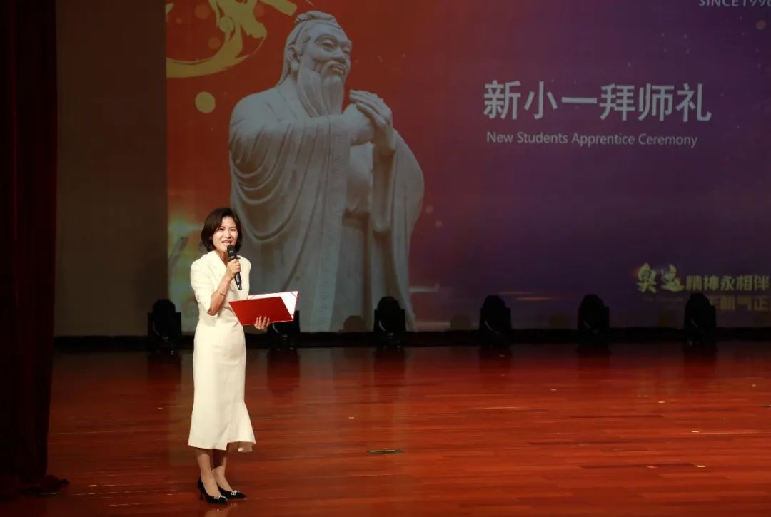 孔子是中国古代儒家思想的集大成者,被称为大成至圣先师、万世师表。一年级师生首先面向孔子像行鞠躬礼。