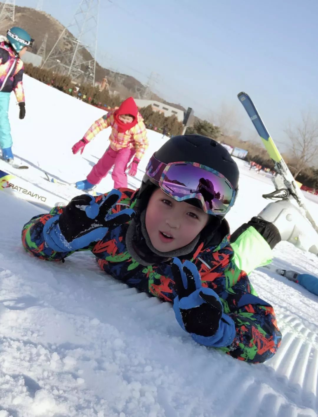 几日里总能听到孩子们“得瑟”地炫耀着自己的“新技能”,总能看到孩子们日益增进的技术,神气、整齐的从山坡上以S形滑下。