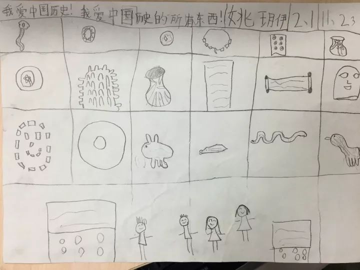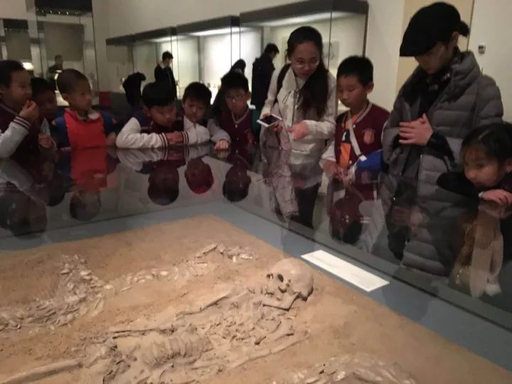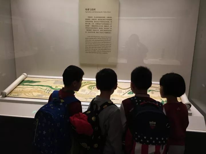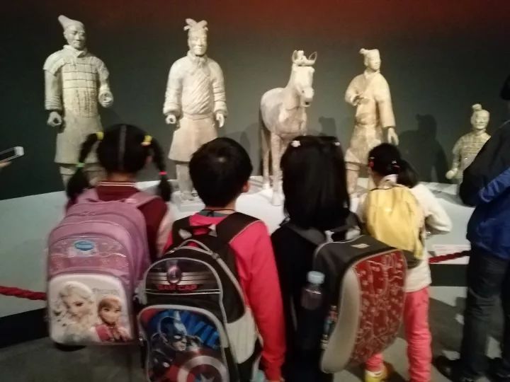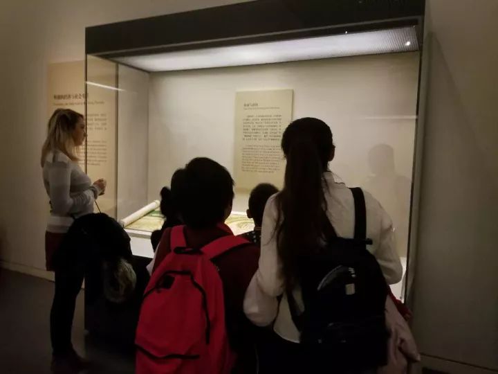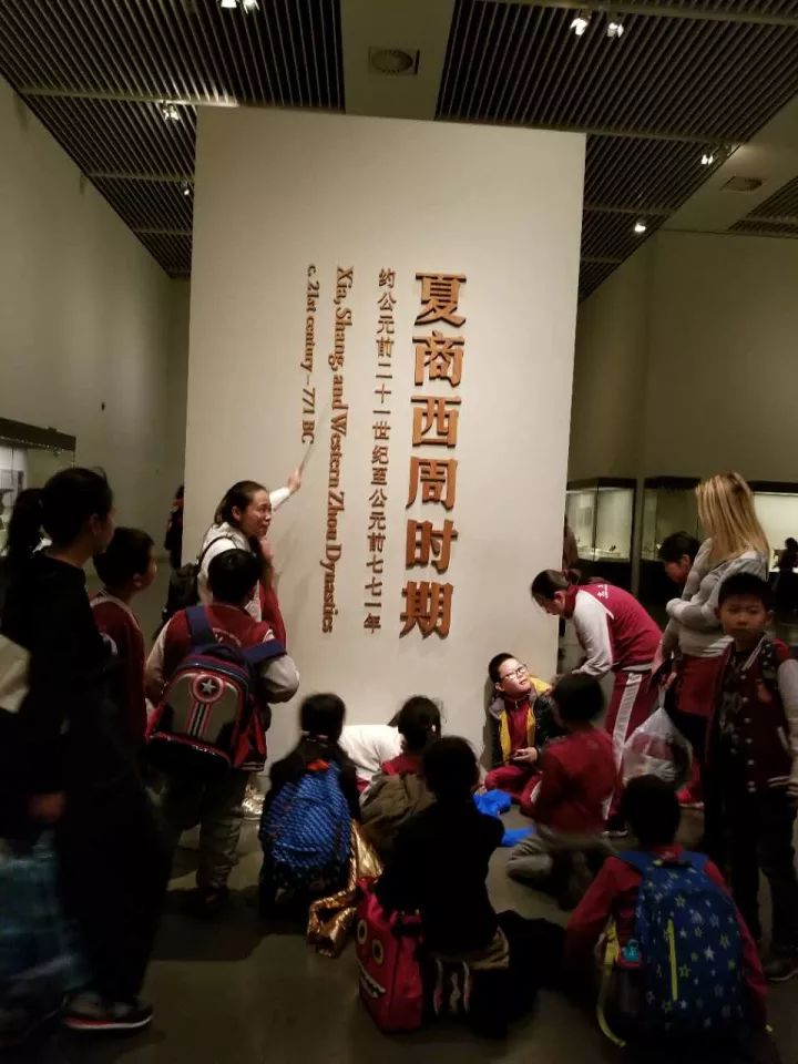本次参观用时最久的是古代中国展厅,从中国远古时期,到夏商周等朝代,再到中华人民共和国,每一个历史时期如画卷一般,栩栩如生地展现在孩子面前。他们仔细地观察着一件件珍贵的历史文物,努力地阅读着介绍的文字,认真地思考着历史中的问题,如:为什么很多中国早期文物都是在河南发掘的?古代人是如何计时和计算的?古代的文字为什么与现代的文字有那么大差别?汉字从刻在骨头上,到竹简上,再到宣纸上,一次次变化承载了多少中国人的智慧?