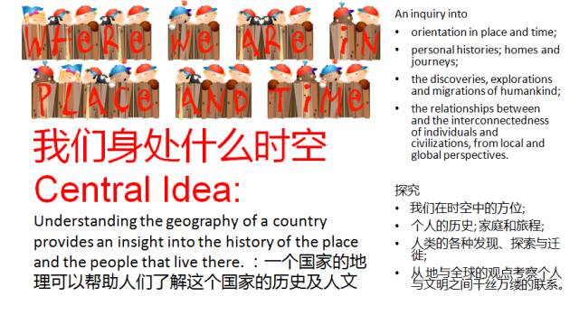 二年级PYP国际班第二单元的探究主题为一个国家的地理,可以帮助人们了解这个国家的历史及人文,在导入阶段(Tuning in)和准备发现阶段(prepareing to find out),孩子们深入了解了两条探究线索:1.什么是地理?2.什么是历史?