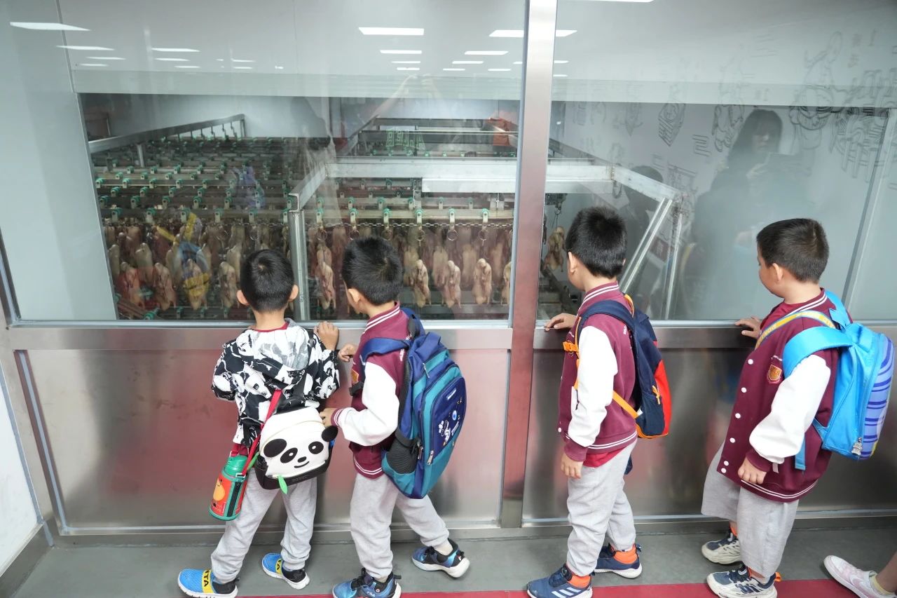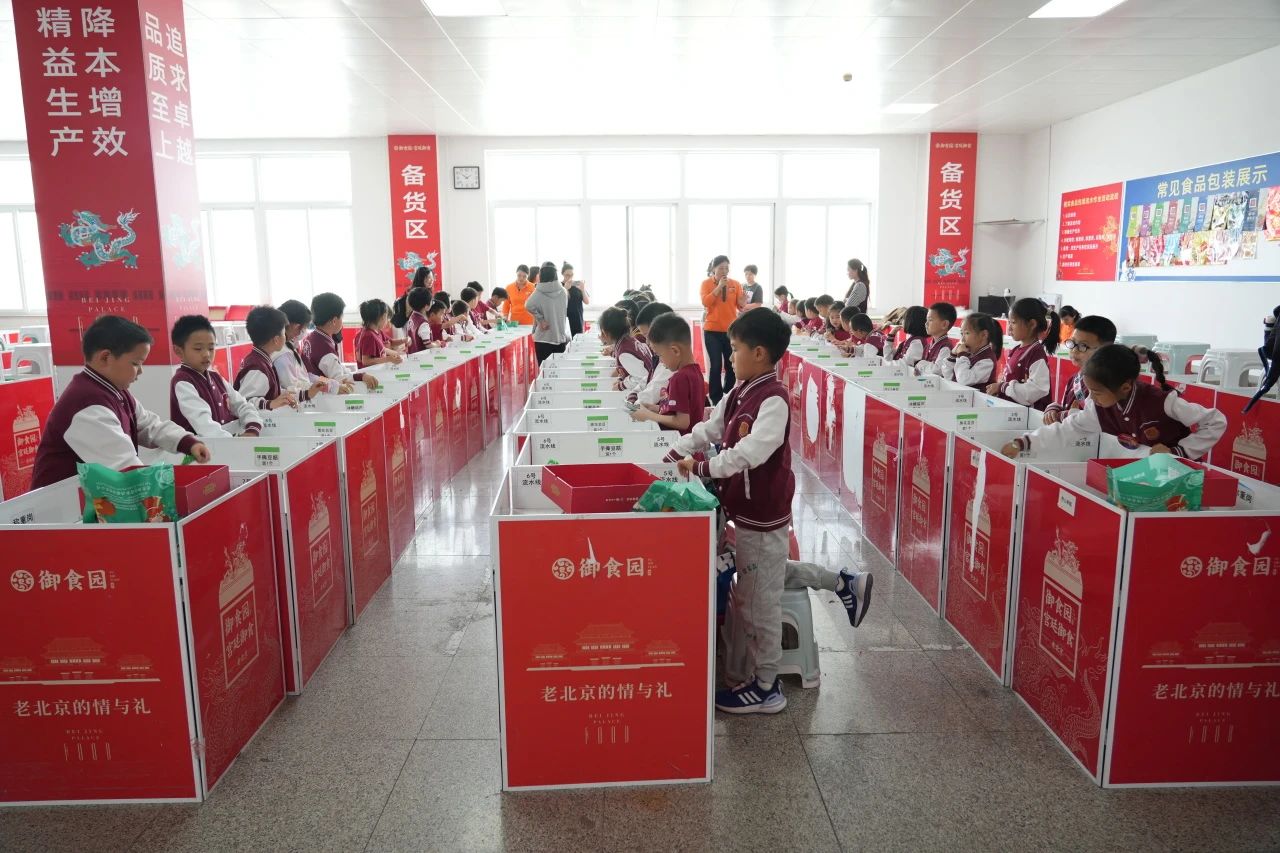 御食园作为京味小吃企业,承载着北京人的回忆与情感。孩子们首先参观了御食园企业文化馆,通过展示的图片、文字以及实物,深入了解了御食园的发展历程、企业精神以及京味小吃的文化内涵,不仅感受到了传统与现代的交融,更激发了对京味文化的好奇和向往。