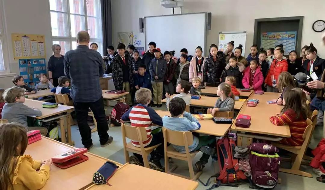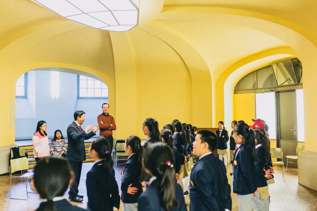 北京王府外国语学校小学部艺术团师生参观了德国柏林著名的公立小学Grundschule an der Marie(当地众多政府官员和知名人士的孩子都在此学校就读),与学校的师生进行了深度交流。学校的艺术负责导师为大家介绍了学校的教学特色,并展示了一组由四年级学生完成的剪纸和几何相结合的作品。交流最后我们互相赠送了小礼物,双方学校代表签署友好学校备忘录,共建艺术课程,缔结校际间的友谊,为北京王府外国语学校的艺术文化筑起新的桥梁。