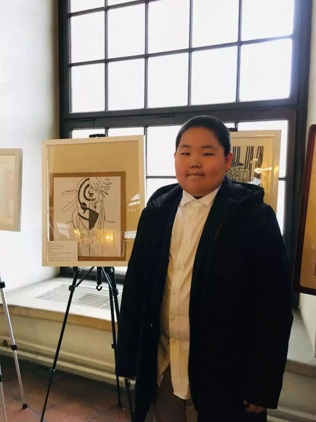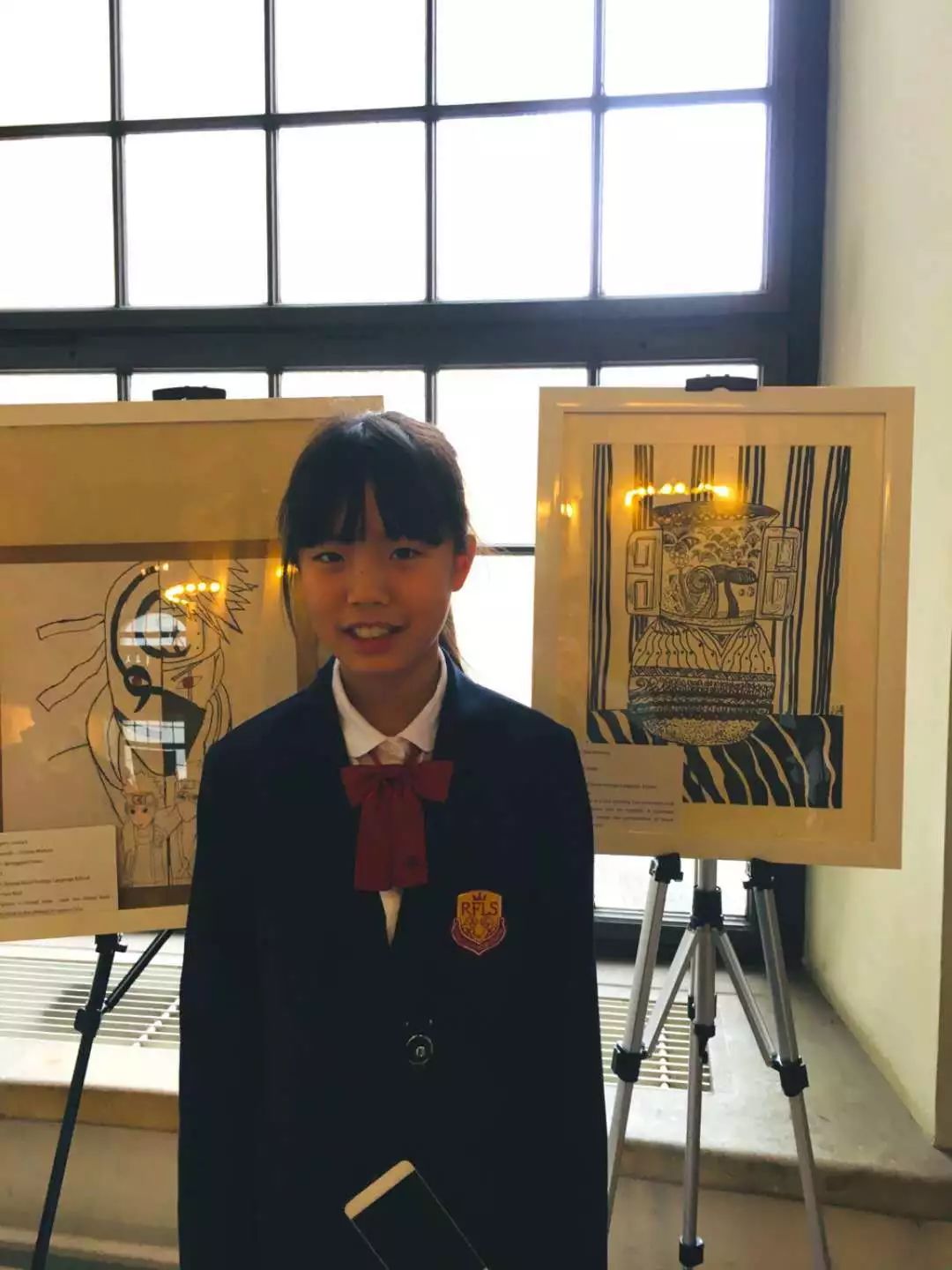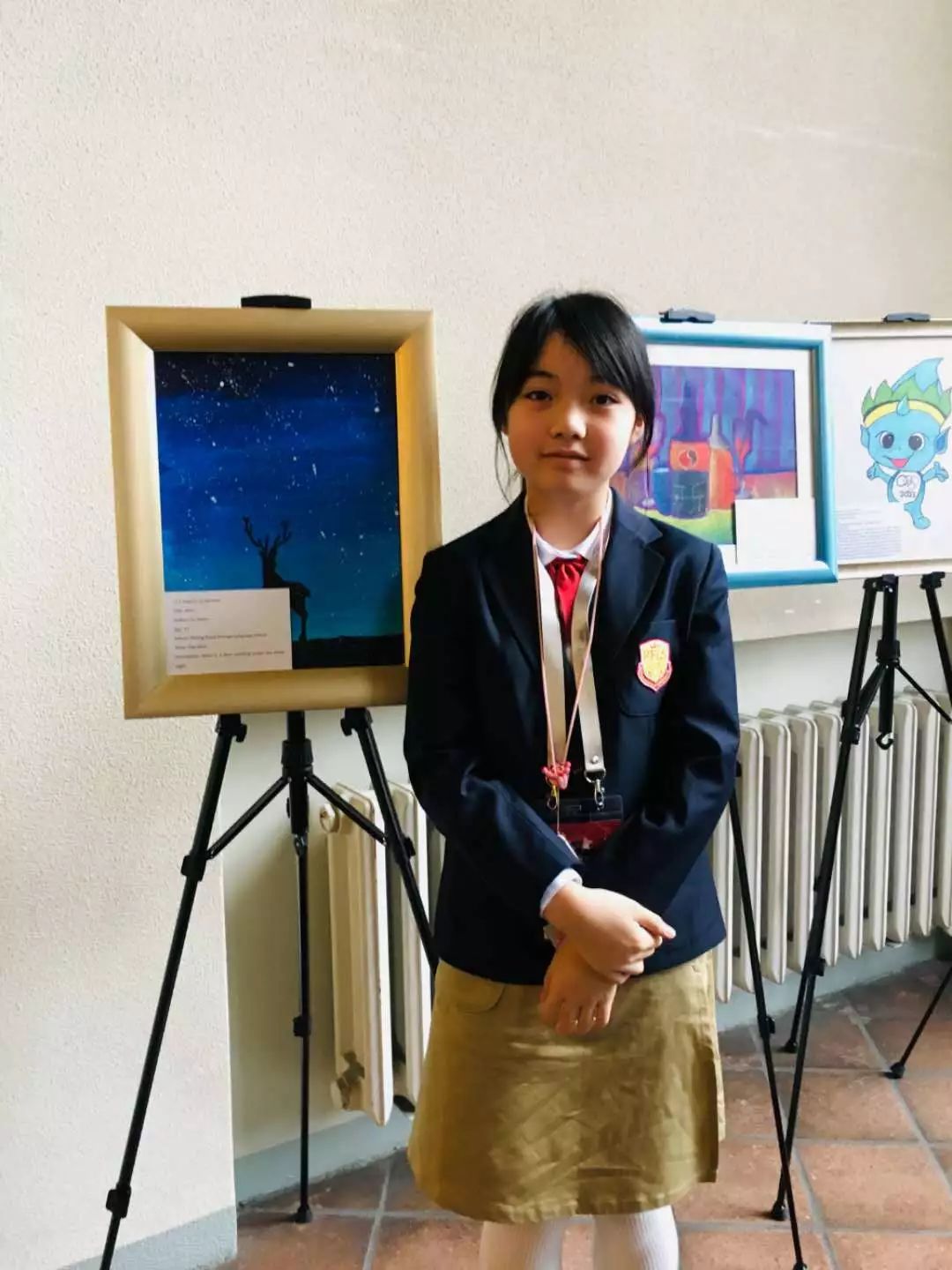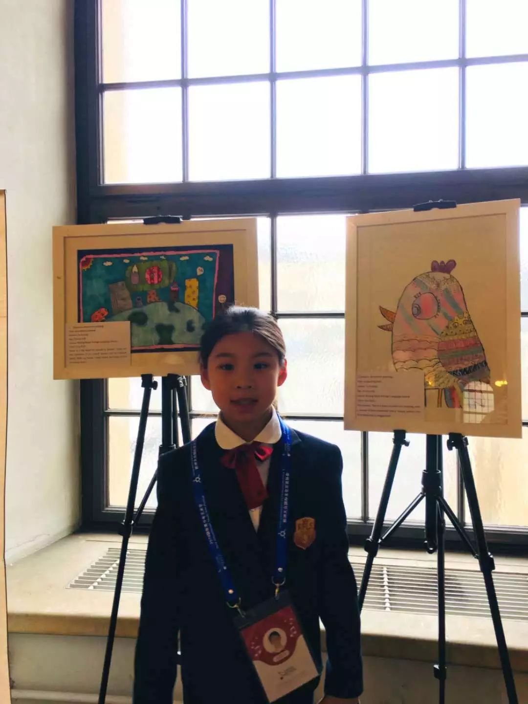 北京王府外国语学校小学部“艺朵”美术团的学生作品在柏林法国大教堂参展。法国大教堂是一座壮丽宏伟的建筑,在穹顶有一观景平台,可在此观看柏林全景。学生参展的作品有油画、国画、儿童画、漫画,也有具有中国特色的剪纸。学生看到大家在评论欣赏自己的作品,非常兴奋,并与自己的作品合影留念。展览结束后,专家评委团为大家颁发了荣誉证书。