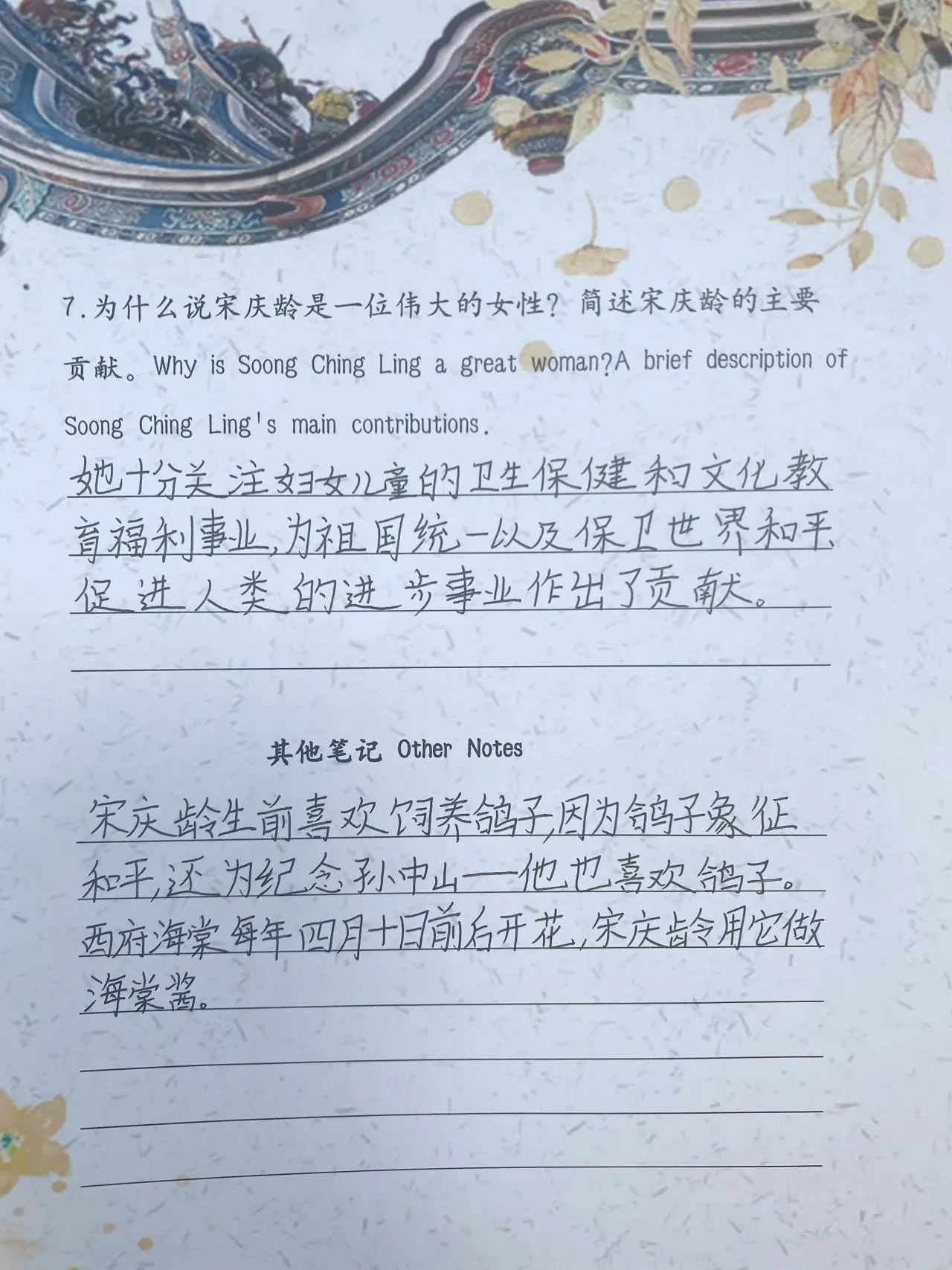 通过此次研学之旅,希望同学们能进一步了解宋庆龄奶奶的人生历程,了解其崇高的信仰和价值观,学习其忠贞不屈、坚韧不拔、克服艰难险阻的奋斗精神和为国为民、坚持原则的崇高风范。