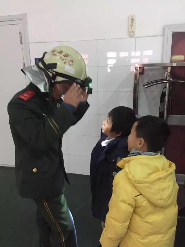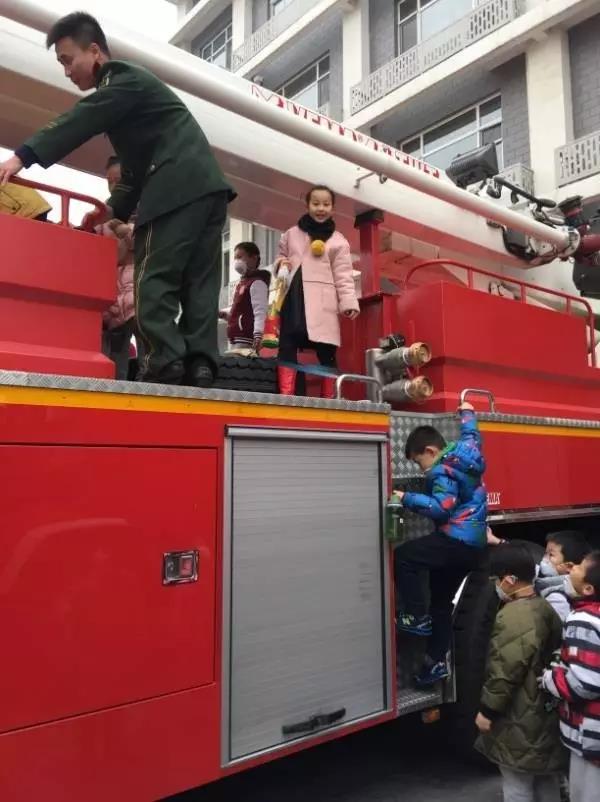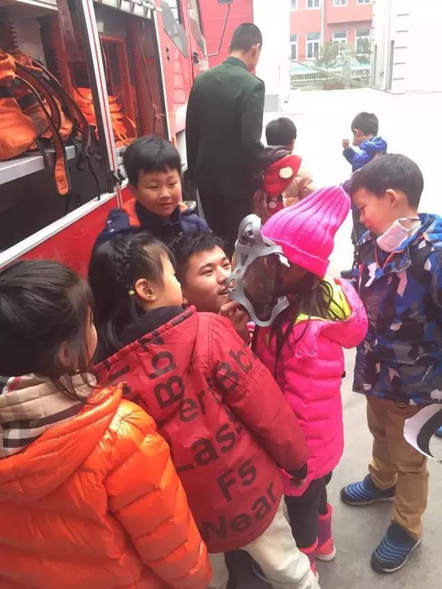 在这里,我们一个个都是富有冒险精神的学习者,面对消防云梯车这个庞然大物,我们无比兴奋。在消防员叔叔的指挥下,我们排队登上消防车,穿上了消防服,带上了消防帽,还体验了消防面罩。看我们像不像小小消防员?