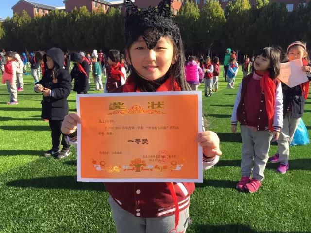 为了提高学生对数学的学习兴趣,增强学习数学的信心,王府外国语小学数学教研组积极准备、组织一、二年级的学生进行了“七巧板拼图比赛”。10月31日上午,升旗仪式结束后,老师们为在比赛中表现优异的学生颁发奖状,他们以高超的智慧和灵巧的双手获得了胜利。