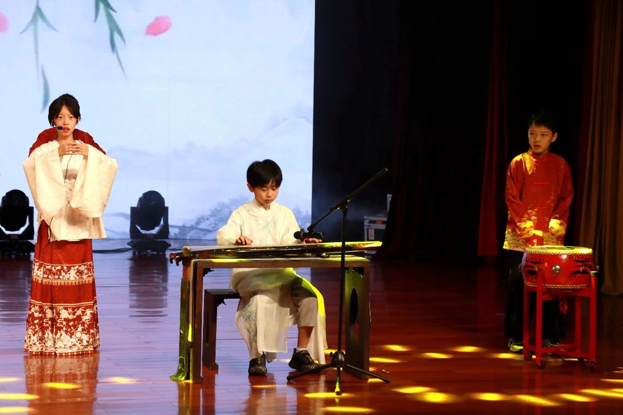 一曲《小雅鹿鸣》开启了融合戏剧、音乐和舞蹈于一身的毕业展序幕。琴筝合奏,流淌的音符瞬间将人们带回到《诗经》的优美意境中。
