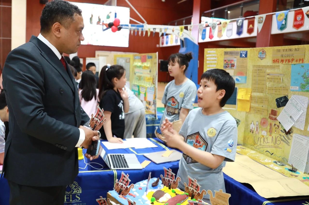 2024年5月30日,北京王府学校小学部PYP五年级学生举办了一场别开生面的毕业成果展。展览以“时空之旅:我们与古代文明的对话”为主题,带领观众穿越时空,领略古代文明的辉煌,同时探寻其与现代文化的紧密联系。