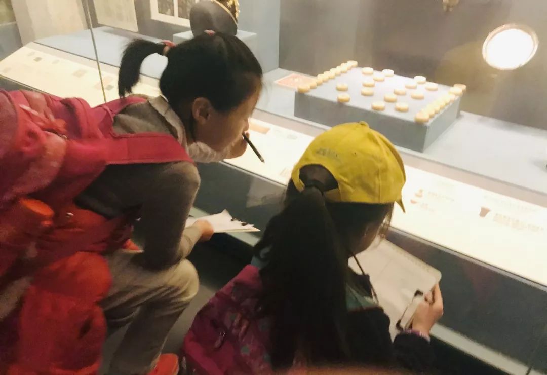 时代在发展,文明在进步,文物的形态、功能与价值也随之发生着相应的变化。孩子们边参观边记录,从艺术、建筑、经济、政治、生活等方面找出了自己感兴趣的文物,记录了它们的发明时间,并思考其用途与当今社会之间的联系。孩子们想到了很多,“人力车是最早的出租车;短剑在古代可用于佩戴,象征着个人的社会地位,也可用于战争;圆形方孔钱联想到了现如今的纸币”等。通过此次活动,孩子们不仅发现了过去文明与当今社会之间一些联系,也加深了对文明的理解和认识。