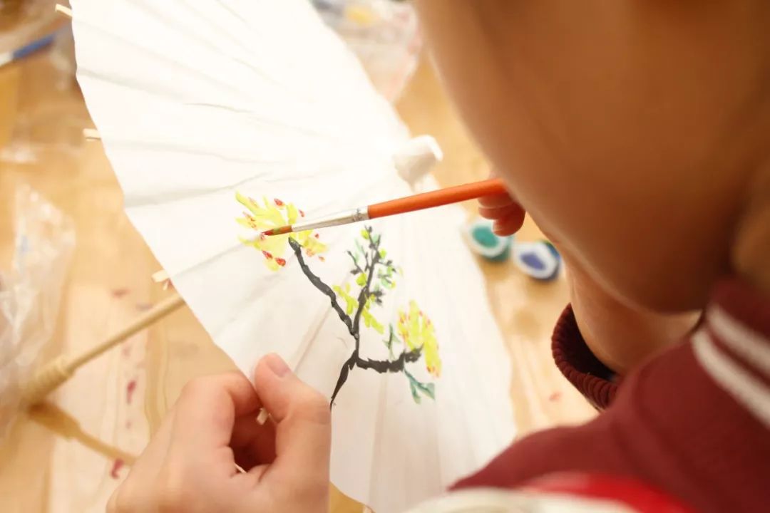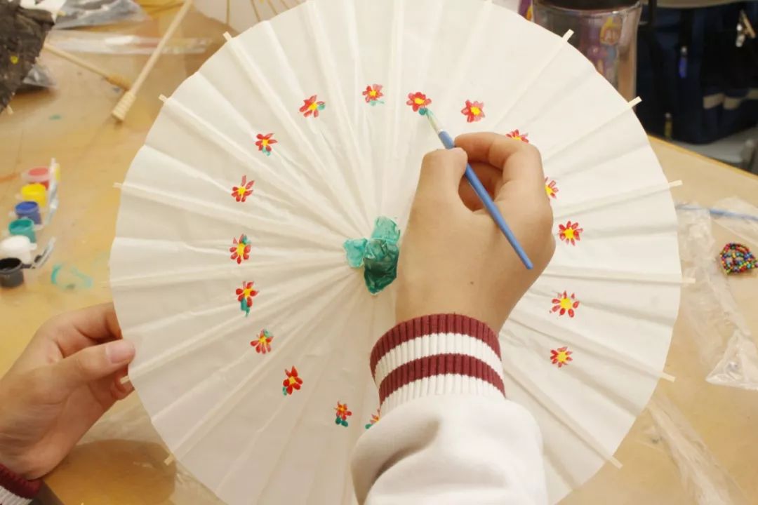 整体构思,细细勾描,让美好春光跃然“伞”上。