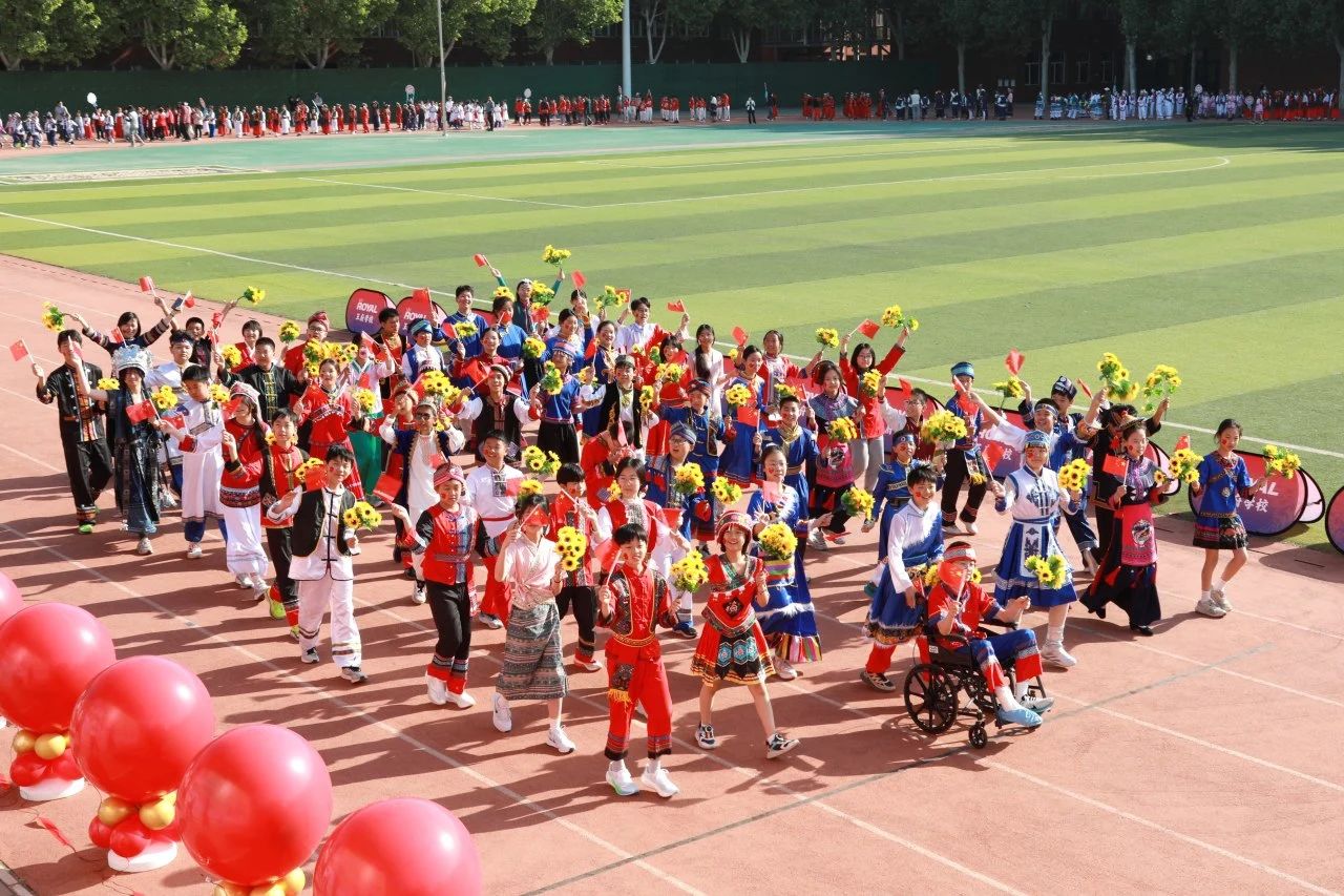 四月的春风里,北京王府实验学校的绿茵场化作中国56个民族文化的展示舞台。