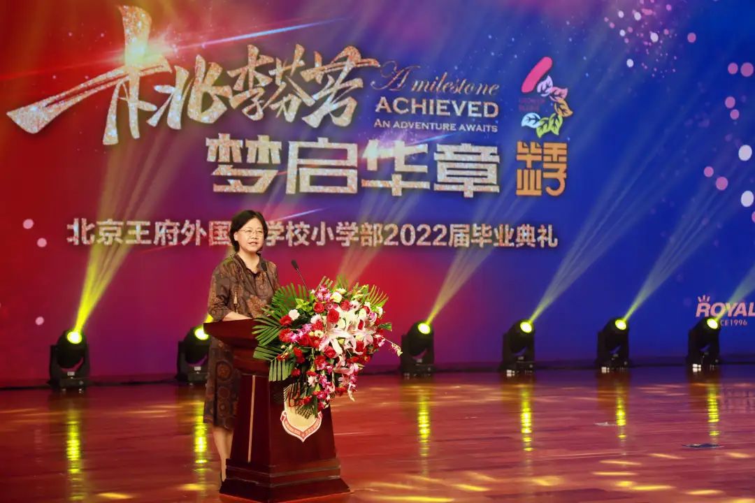 今天,我们欢聚一堂,举行北京王府外国语学校小学部2022届毕业典礼。在此,我谨代表小学部全体教职员工,向2022届毕业生表示热烈的祝贺!