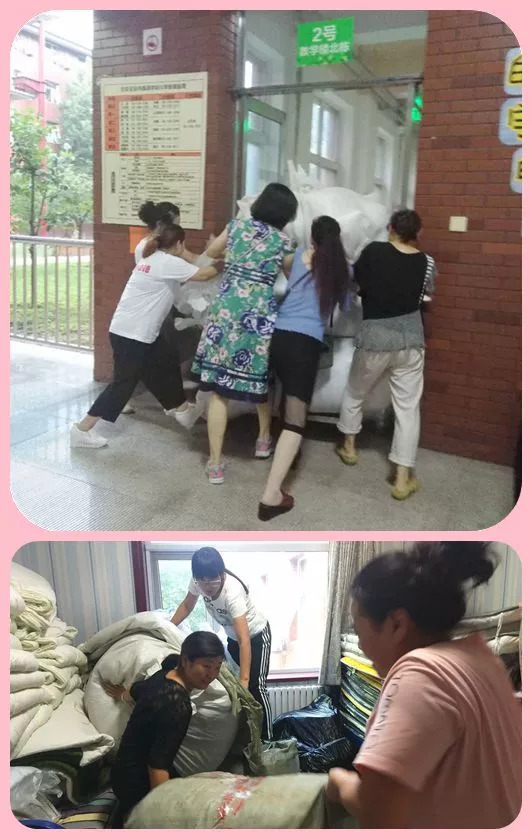 ▲堆积如山的开学物资,导育教师团队齐心协力