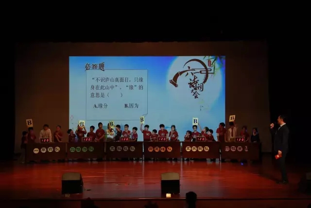 最激动人心的是斗诗环节,这也是整场斗诗会的高潮部分。24名学生组成了六个代表队,分别是:李白队、杜甫队、杜牧队、王维队、苏轼队和陆游队。小选手们是从全校学生中抽选出来的背诗高手,今天云集此处,通过抢答的方式斗诗、一决高低。