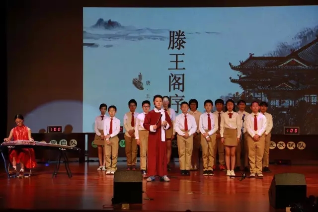 压轴的节目是六年级组学生吟诵的《少年中国说》。 “故今日之责任,不在他人,而全在我少年。少年智则国智,少年强则国强,少年独立则国独立,少年自由则国自由,少年进步则国进步……”孩子们的朗诵气势磅礴,激奋人心。全体学生起立,共同宣誓,为中华之更高崛起而读书!