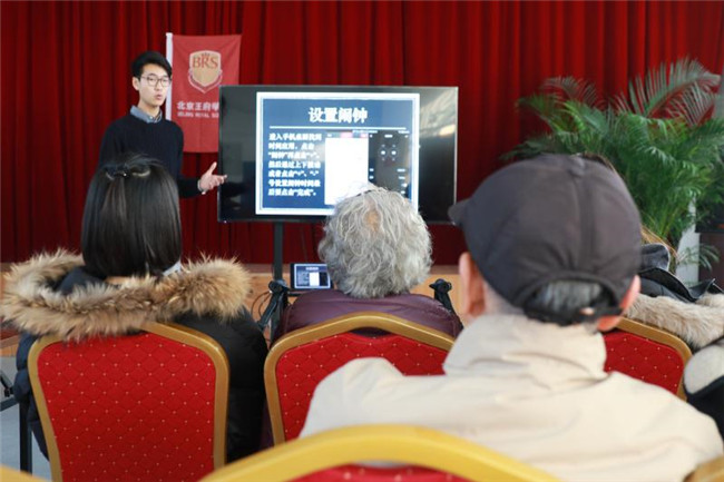 随着现代科技发展,绝大部分老年人已经与年轻人基于手机,电脑和网络的生活方式脱节,同时也因为不会使用各种通讯设备,与亲人联系越来越少。为了让爷爷奶奶们跟上时代的步伐,让他们也体验现代科技给生活带来的便捷,2017年12月9日,北京王府学校学生会社践部带领6位同学来到北七家汇晨老年社区,为爷爷奶奶们讲解智能手机的基本操作。