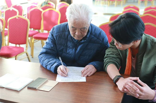 ▲社区的老人们认真填写问卷